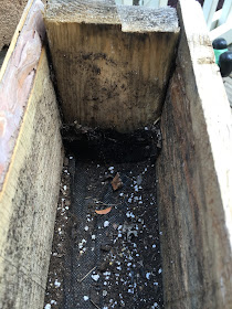 I figured out where I wanted to put the planting areas on the pallet, one side has 4 boards across but the other has 3; I decided to plant in the top and bottom and leave the center open, with the 3 boards being the front so I can access the planting spaces.